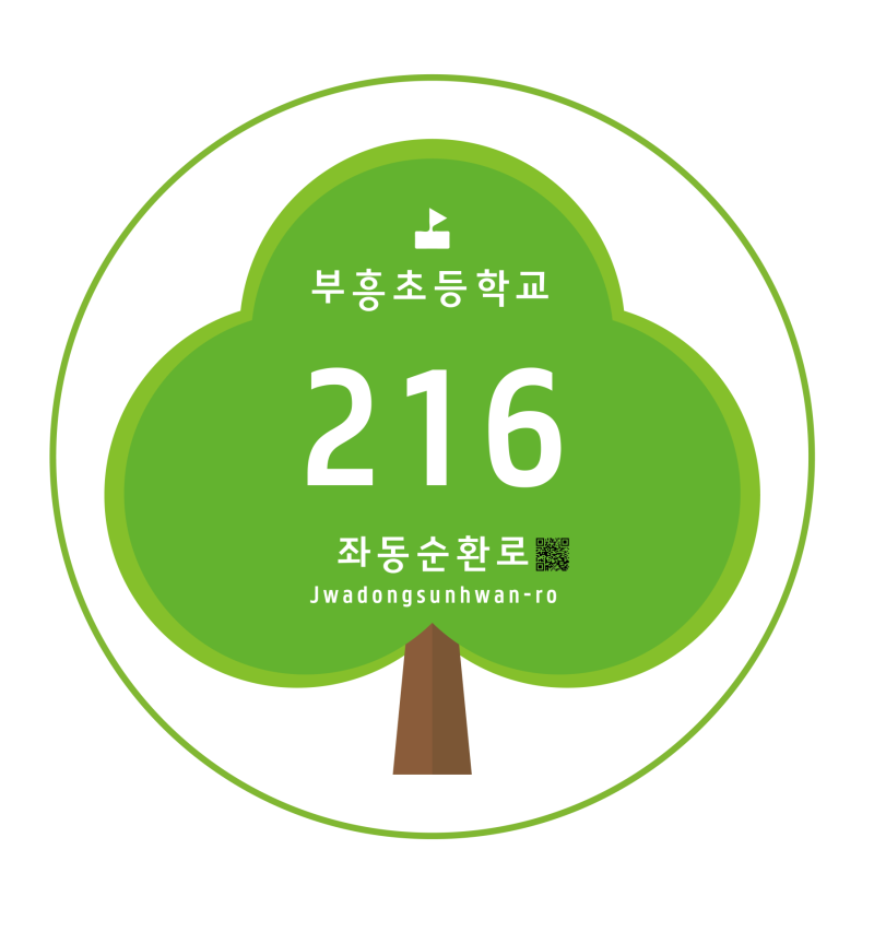 새 건물번호판은 자라나는 학생들의 공간인 학교라는 상징성을 살려 나무 모양으로 디자인됐다.