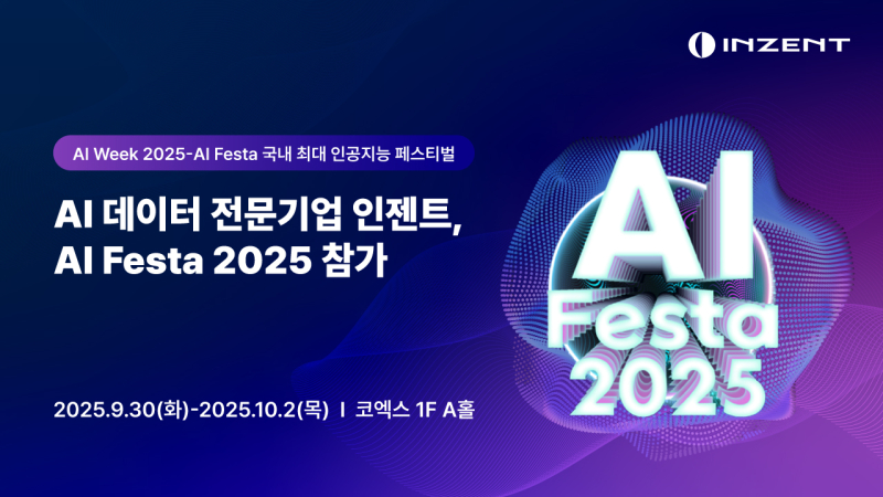 [서울경제TV=강지영 인턴기자] 데이터 전문기업 인젠트가 9월30일부터 10월2일까지 코엑스 1층 A홀에서 열리는 ‘AI Week 2025 - AI Festa’에 참가한다.