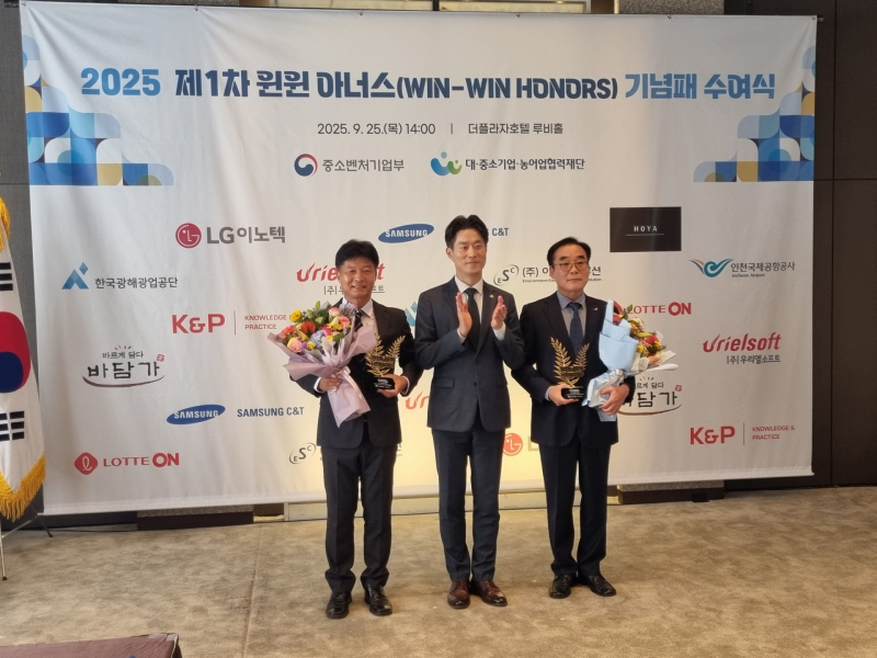 코미르는 당일 서울 더플라자 호텔에서 열린 '2025년 윈윈아너스(1차) 기념패 수여식'에서 협력기업인 ㈜이앤켐솔루션과 함께 수상했다. 이는 정부로부터 공공기관과 협력 중소기업이 상생하며 서로의 이익을 추구하는 우수한 동반성장 활동을 수행하였다고 인정받은 것이다.