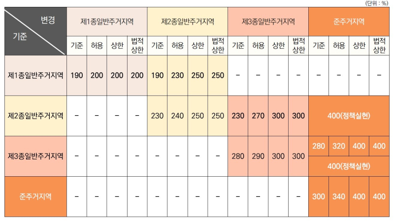 변경안에 따라 일반 정비사업은 1단계 종 상향, 역세권 정비사업은 최대 준주거지역(용적률 400%)까지 확대가 가능하다.