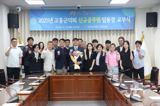 류제동 고흥군의회 의장은 “고흥군의회에서 공직생활을 시작하는 신규 임용자를 진심으로 환영한다”며 “군의회의 일원으로서 자긍심과 사명감을 가지고 맡은 업무에 성실히 임하고 의회의 발전을 위해 역량을 발휘해 달라”고 말했다.