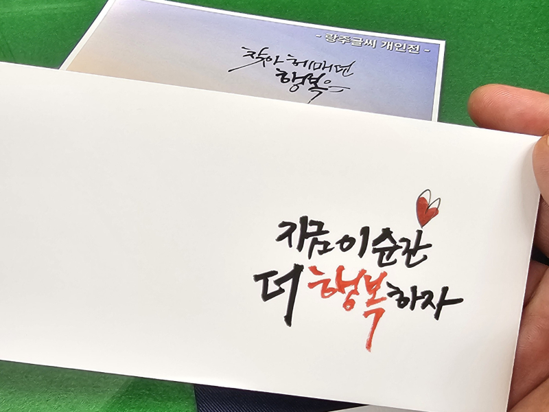특히 방명록을 남긴 방문객에게는 작가가 직접 쓴 캘리그래피 편지봉투가 증정된다. 이 봉투는 따뜻한 문구와 정성이 담겨 있어 다가오는 추석에 부모님이나 가족들에게 용돈 봉투로 활용하기 좋다는 평가를 받는다.