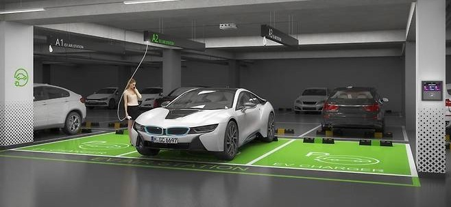 ▲‘한화 건설부문’은 국내 최초로 개발·양산한 ‘천장형 전기차 충전시스템(EV air station)’으로 최고혁신상을 받았다. 하나의 충전기로 다수 차량을 동시에 충전할 수 있는 전력 분배방식과 AI 지능형 화재감지 연동 시스템을 탑재해 안전성과 효율성을 동시에 높였다. FIX 2025 현장에서는 충전시스템과 함께 이동식 수조 로봇을 활용한 모의 화재 진압 시연도 선보인다.