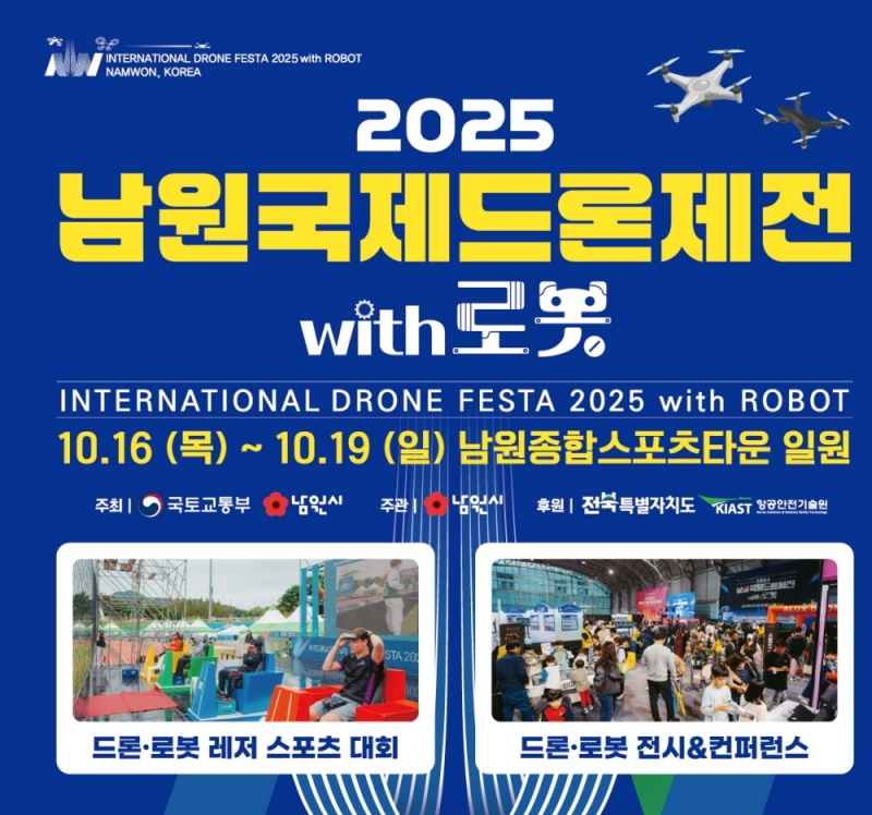 [서울경제TV 남원=최영 기자] 국내 최대 규모의 융복합 드론 축제인 '2025 남원국제드론제전 with 로봇'이 오는 16일부터 19일까지 4일간 남원종합스포츠타운 일원에서 성대하게 열린다.