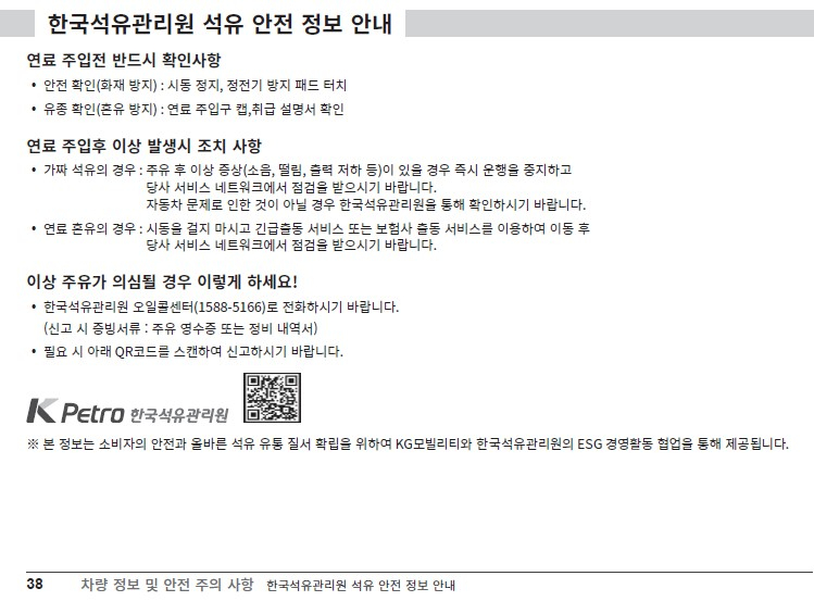 KGM, 국내 최초로 자동차 취급설명서에 석유 안전 정보 수록