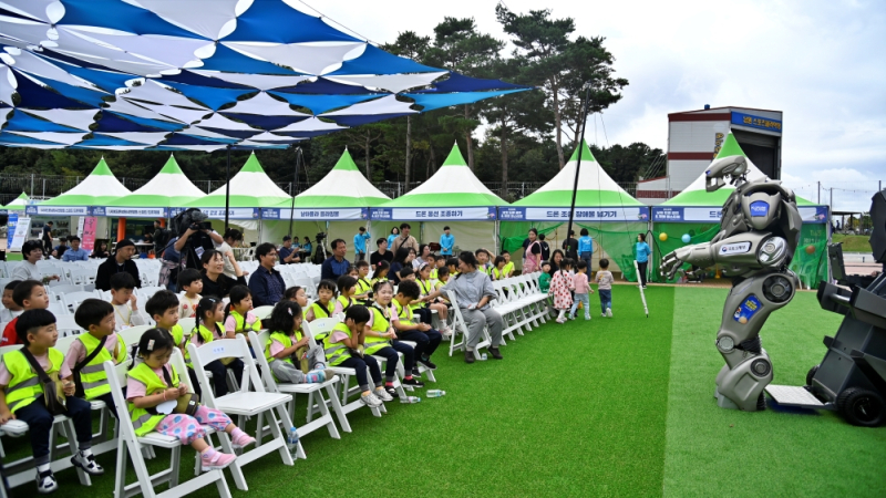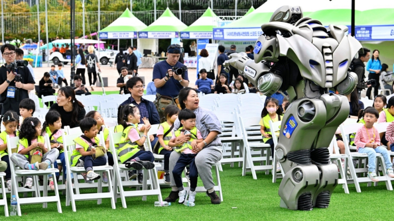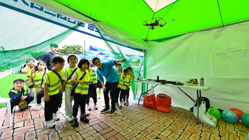 행사장에는 초등학교 저학년과 유치원생들이 노란 안전조끼를 입고 방문해 로봇과 인사를 나누고, 드론 조종 체험 부스에서 날아오르는 드론을 보며 눈을 반짝였다.