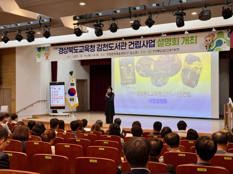 [서울경제TV 김천=김아연 기자] 경상북도김천교육지원청은 10월 16일 김천학생문화예술센터에서 (가칭)경상북도교육청 김천도서관 건립 사업 설명회를 개최하였다.