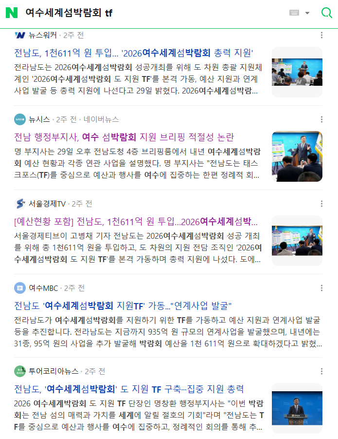 9월 29일 브리핑 직후 ‘전남도, 여수섬박람회 지원 TF 본격 가동’, ‘명창환 부지사, 여수세계섬박람회 전면 지원 선언’ 등 관련 보도가 쏟아지며 전남도와 명 부지사가 언론의 중심에 섰다.