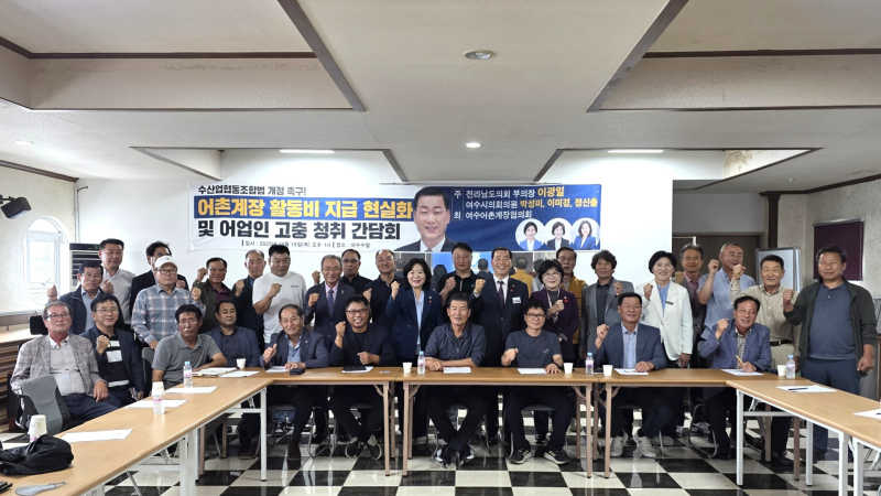 이날 간담회에는 이 부의장을 비롯해 여수시의회 박성미·이미경·정신출 의원, 전라남도청·여수시청 관계자, 황보원 여수시 어촌계장협의회 회장, 30여 명의 어촌계장이 참석해 어촌계 운영 실태와 제도 개선 방향을 집중 논의했다.