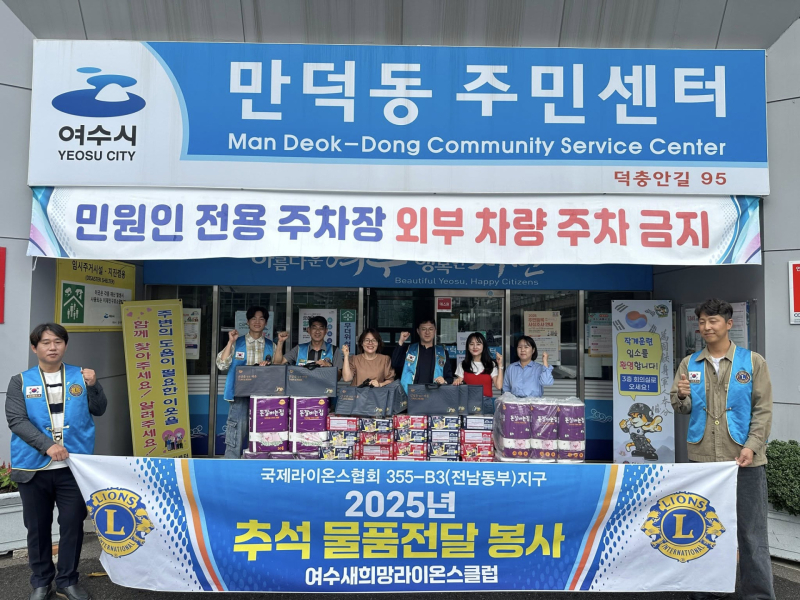 - 5국제라이온스협회 355-B3지구 여수새희망라이온스클럽, 만덕동·복지시설 찾아 생필품·혹한기 물품 전달