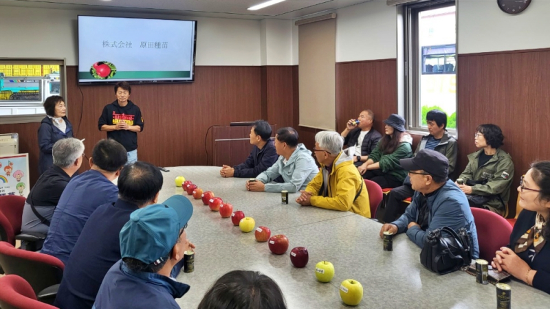 방문단은 일본 내 최대 사과 생산지인 아오모리현의 농업시험장, 사과협회, 과수농가 등을 찾아 △기후변화 대응 재배 기술 △병해충 방제 및 왜화재배 기술 △유통·경매 시스템 △지방정부의 농가 지원정책 등을 중심으로 현장 연수를 진행했다.