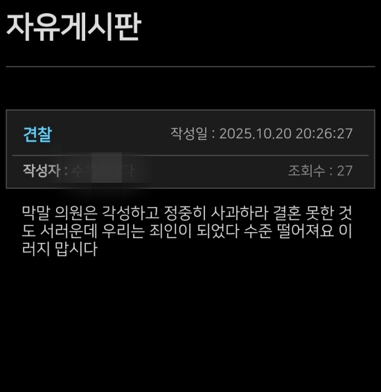 직원들은 게시판을 통해 "막말 의원은 각성하고 정중히 사과하라", "수준 떨어져요, 이러지 맙시다" 등의 비판 글을 올리며 의원의 퇴행적인 발언과 태도를 강력하게 규탄하고 있다. 잇따른 불미스러운 사건으로 인해 보성군 공직사회의 내부 갈등과 불만이 표출되는 장소가 된 노조 게시판은 조직의 불안정성과 지방의회의 자질 문제를 동시에 보여주는 상징적인 공간이 됐다는 평가다.