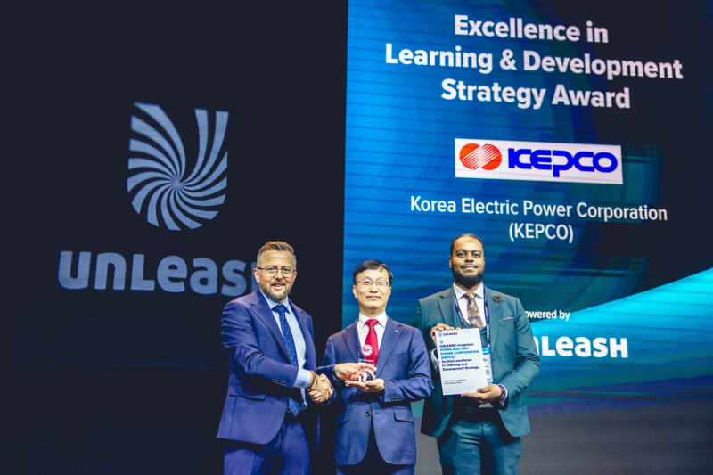 한전은 지난 21일 프랑스 파리에서 열린 유럽 최대 규모의 HRD 컨퍼런스인 'Unleash World'에서 ‘2025 Unleash HRD Award’를 수상했다. 이는 지난 5월 미국 ATD(Association for Talent Development) 주관 ‘BEST Awards’ 2년 연속 수상에 이은 쾌거이다.
