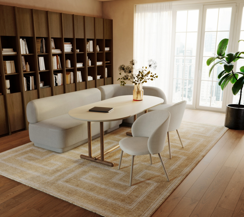 11월 출시 예정인 ‘바젤’은 정제된 비례감과 담백한 장식미, 원목의 자연스러운 질감이 어우러져 우아하고 클래식한 멋을 자아내는 다이닝 시리즈다.