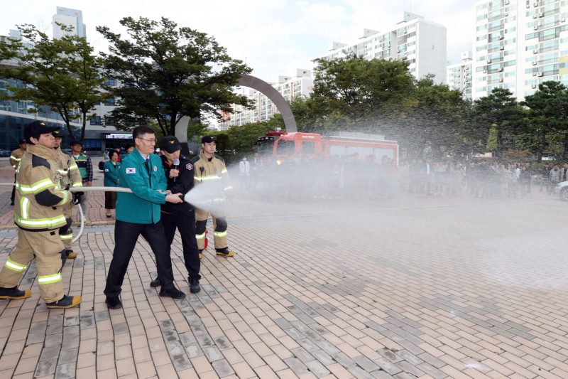 훈련은 가을철 화재 위험이 높아지는 시점에 청사 안전과 민원인 보호를 위한 예방 활동의 일환으로, 직원들의 실질적 대응 능력 향상과 협력체계 점검에 의미를 두고 진행됐다./hyejunkim42@sedaily.com