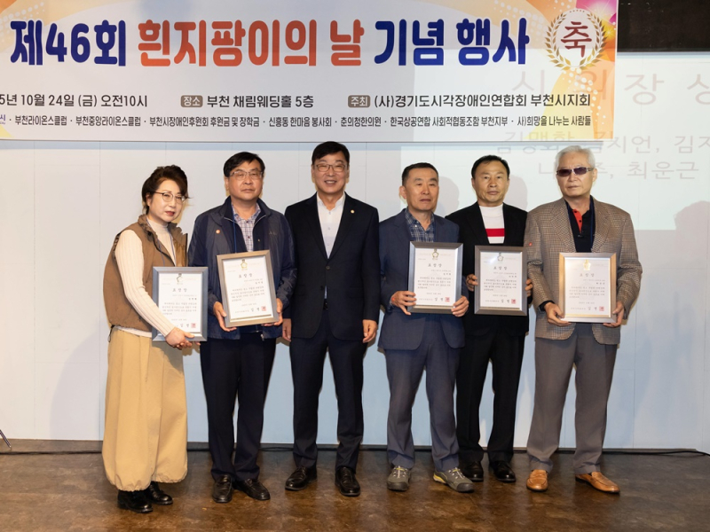 의회는 행사가 (사)경기도시각장애인연합회 부천시지회가 주관했으며, 시각장애인과 가족, 자원봉사자 등이 참여한 가운데 유공자 시상과 장학금 전달식이 진행됐다고 밝혔다.