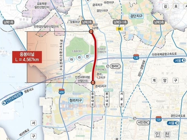 인천 ‘중봉터널’ 민간투자 제3자 공모…2032년 개통 목표