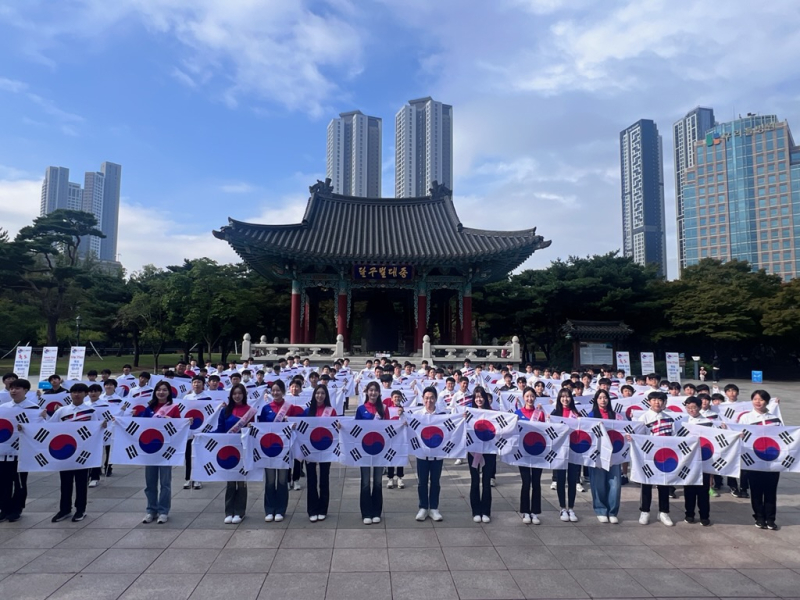 참가자들은 ‘독도사랑’ 문구가 새겨진 티셔츠를 착용하고 태극기를 활용한 율동으로 독도의 소중함과 주권 수호의 의미를 표현했다. 특히 중앙중학교 학생 125명이 참여해 미래세대가 대한민국 고유 영토인 독도의 역사적 의미를 직접 체험하며 배우는 뜻깊은 시간이 됐다.