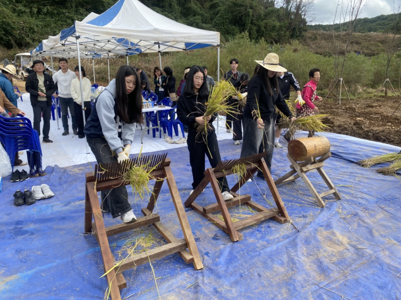 가을걷이 행사는 2020년부터 이어져 왔으며, 올해 4월부터 영농조합법인 돌리네마을과 문경 YMCA 등 지역주민들과 협업하여 돌리네 습지 휴경지 일대(3,075㎡, 답)에 친환경 농법을 사용하여 경작해왔다.
