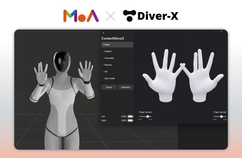 특히 이번 협약으로 MoA Mocap은 Diver-X의 ‘Contact Glove’ 디바이스와의 연동이 공식 지원된다. 사용자는 페이셜·바디·핸드 모션을 통합적으로 캡처할 수 있는 환경을 구축할 수 있게 됐다.