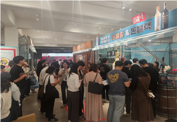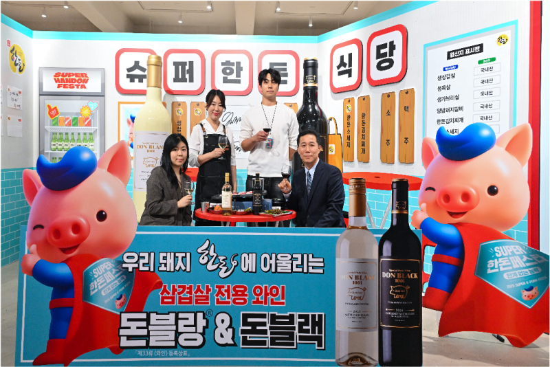 특히 한돈과 함께하는 ‘삼겹살엔 돈블랑와인, 목살,보쌈,수육엔 돈블랙와인’ 시음존은 MZ세대 소비자와 가족 단위 방문객들로 붐볐다. 돈블랑1001은 칠레산 쇼비뇽블랑 품종으로 만들어진 화이트와인으로, 삼겹살의 고소한 지방 맛을 상큼한 산미로 잡아주는 ‘삼겹살 전용 와인’이다.