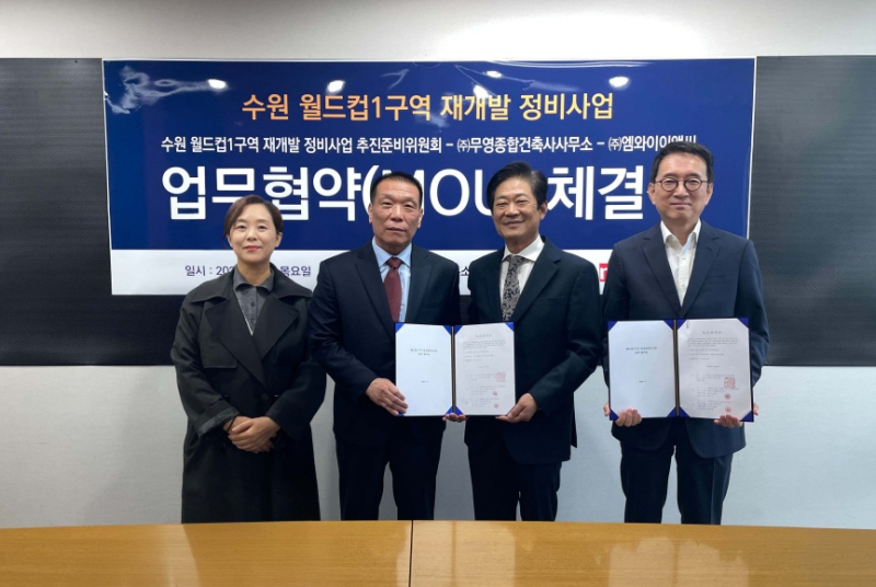 수원 월드컵1구역-무영건축, 재개발 위한 MOU 체결
