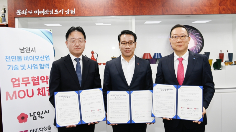 [서울경제TV 남원=최영 기자] 전북 남원시는 지난 27일 한미화장품, 남원시바이오산업연구원과 함께 '남원시 천연물 바이오산업 발전을 위한 업무협약'을 체결했다고 밝혔다.