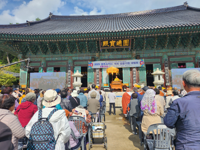 [서울경제TV 부산=김정옥 기자] 대한불교조계종 부산 해운정사가 지난 25일 오전 ‘2025 경주 APEC 성공기원 대법회’를 봉행하며 아시아태평양경제협력체(APEC) 정상회의의 성공적인 개최와 동아시아의 화합과 세계 평화를 발원했다.