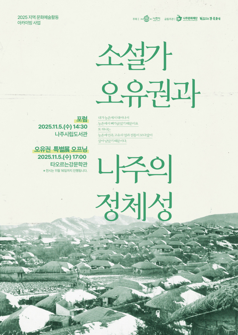 김찬동 나주문화재단 대표이사는 "나주 출신 오유권 선생의 문학을 통해 지역의 정체성과 문화적 가치를 다시 확인하는 뜻깊은 자리가 될 것"이라며 "앞으로도 지역 문학인과 작품을 꾸준히 발굴·보존해 나주의 문화 기반을 튼튼히 다져가겠다"고 말했다.