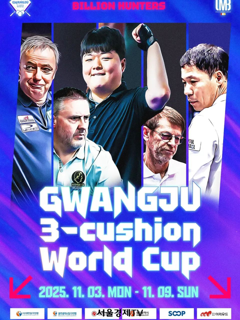 11월 3일부터 9일까지 광주 빛고을체육관 '2025 광주 세계3쿠션 당구월드컵' 열려
