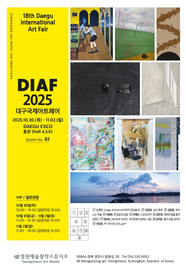 최기문 영천시장은 “이번 ‘DIAF 2025’에 영천예술창작스튜디오 17기 입주 작가들의 작품을 선보임으로써, 다양한 프로그램을 통해 갤러리와 컬렉터 간의 활발한 교류가 이뤄지고 새로운 예술적 담론과 네트워크가 형성되는 장이 되길 기대한다”고 말했다.