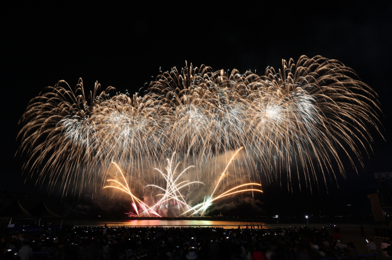 이어 1만 5천여 발의 불꽃이 바다 위로 터지며 장관을 이뤘고, 해변 곳곳에서는 관람객의 탄성이 이어졌다.