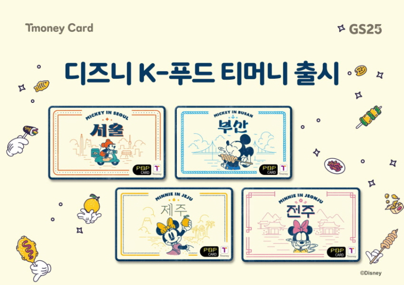 ‘디즈니 K-푸드 티머니카드’는 서울, 부산, 제주, 전주 4개 도시를 바탕으로 각 지역의 식문화를 즐기는 ‘미키 마우스’와 ‘미니 마우스’의 모습을 담았다.