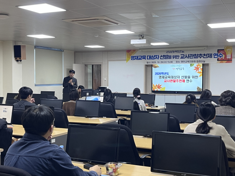 [서울경제TV 영천=김아연 기자] 경상북도영천교육지원청은 10월 29일 오후 3시, 영천교육지원청 3층 컴퓨터실에서‘2026학년도 영재교육대상자 선발을 위한 교사관찰추천제 연수’를 실시하였다.