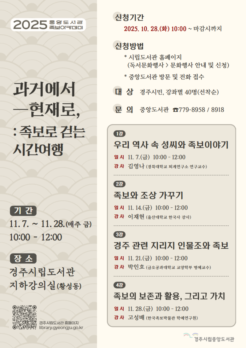 - 10경주시립중앙도서관, ‘2025 족보아카데미’ 운영