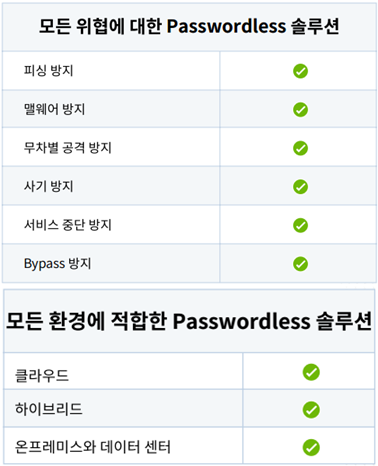 또한 RSA Help Desk Live Verify를 통해 IT 헬프데스크 공격에 대한 양방향 검증 기능을 제공해 기술 지원 사기나 계정 탈취(ATO) 공격에도 대응할 수 있다. RSA는 패스워드리스 구현을 위한 다양한 하드웨어 인증기를 제공한다.