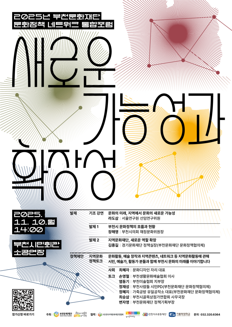 [서울경제TV 인천=김혜준 기자] 부천문화재단이 ‘부천시 문화의 미래, 새로운 가능성과 확장성’을 주제로 문화정책포럼을 연다.