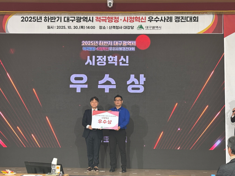 [서울경제TV 대구=김정희 기자] 대구도시개발공사(사장 정명섭)는 ‘2025년 하반기 대구시 적극행정·시정혁신 우수사례 경진대회’에서 시정혁신 분야 장려상을 수상했다.