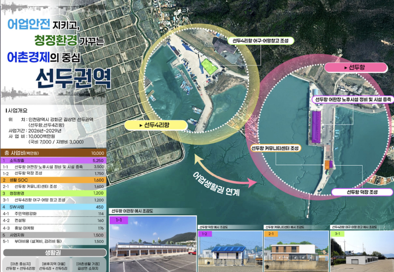 [서울경제TV 인천=김혜준 기자] ‘2026년 어촌신활력 사업’ 공모에서 강화군 선두항과 중구 예단포항이 최종 선정됐다.