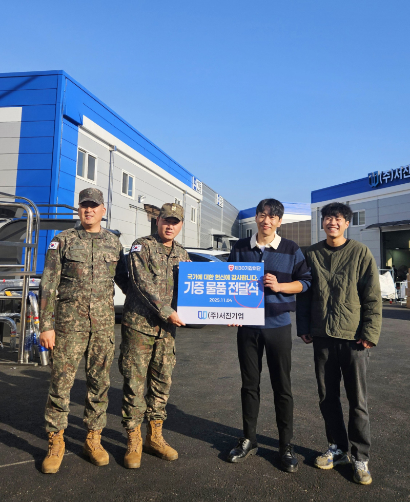 서진기업은 회사 임직원과 인연이 있는 육군 제30기갑여단이 유해발굴 임무를 수행 중이라는 소식을 접하고, 현장에서 헌신하는 장병들의 노고에 보답하고자 기증 의사를 전달했다.