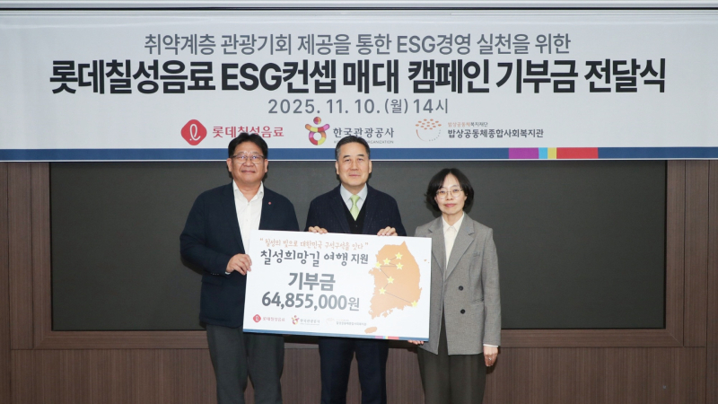[서울경제TV=오동건 인턴기자] 롯데칠성음료는 한국관광공사, 밥상공동체종합사회복지관과 손잡고 사회 취약계층의 국내관광 여행지원을 위한 기부금을 밥상공동체에 전달했다고 11일 밝혔다.