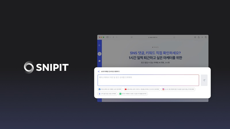 스니핏은 “인스타그램 최근 게시물 10개의 댓글을 분석해줘”처럼 자연어로 명령하면 AI가 자동으로 데이터를 수집하고 분석 결과를 표 형태로 정리한다. 여러 플랫폼을 오가며 데이터를 복사·붙여넣던 과정을 한 번의 명령으로 처리해, 마케터가 전략 수립과 크리에이티브 기획에 집중할 수 있도록 설계됐다.
