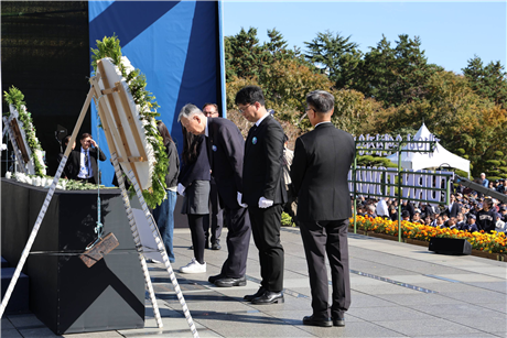 국가보훈부는 매년 11월 11일 부산 유엔기념공원에서 ‘유엔 참전용사 국제추모의 날’ 기념식인 ‘부산을 항하여’를 진행하고 있다. 올해로 19회를 맞았다. 올해 기념식엔 이 회장을 포함한 국민대표 4명이 헌화에 나섰다.