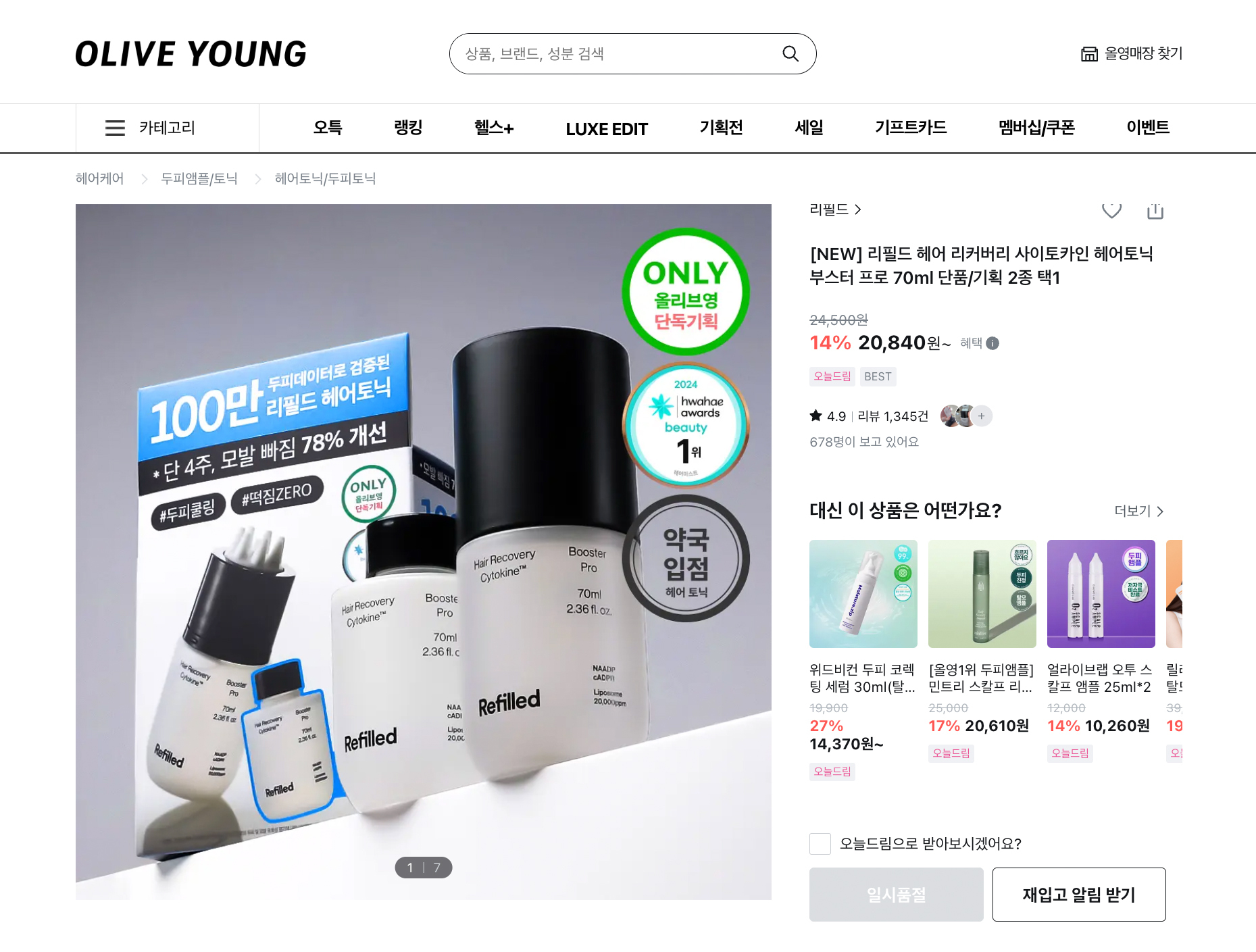 - 리필드 ‘부스터 프로’, 올리브영 랭킹 1위 등극