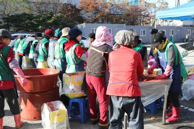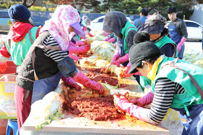 이날 담근 김치는 관내 지역사회 어르신 및 독거노인에 전달될 예정이다./tkddml85@sedaily.com