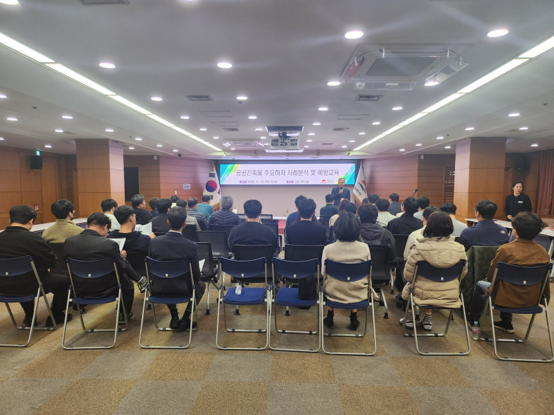 이번 교육은 건축구조기술사, 건축시공기술사, 토질및기초기술사 자격증을 보유한 한국건축시공기술인협회의 강사를 초빙해 진행됐으며, 공공건축물 건립 시 발생하는 주요 하자에 대한 사례분석을 통해 하자 발생을 최소화하는 데 중점을 두었다.