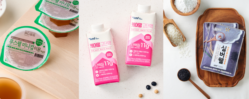 한국메디칼푸드에 따르면, 무스웰 미니컵 이뮨은 직장인과 회복기용 면역력 강화 간식으로, 케어밀 고단백은 회복기와 활동기용 단백질 음료로, 실버웰은 노년층용 영양죽으로 설계됐다.