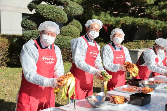 14일 해남군에 따르면 이날 안양시청에서 '사랑의 김장김치 나눔행사'를 열고 청정 해남배추로 담근 명품 김장김치를 안양시에 전달했다. 행사에는 명현관 군수와 최대호 안양시장을 비롯해 박지원·민병덕 국회의원, 안양시 주민자치협의회원들이 직접 참여해 김치를 담그며 뜻깊은 시간을 가졌다.