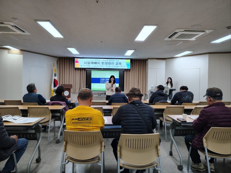 주요 내용은 ▲시설재배지 토양 분석 이해 ▲양분 균형 관리 및 시비 기술 ▲퇴비·유기물 활용 방안 ▲염류 제거 및 토양병해 예방 관리 등으로, 농가들이 현장에서 바로 적용할 수 있는 실천 중심 지식으로 구성됐다.
