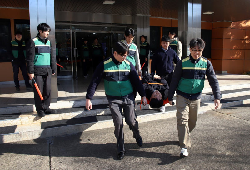 훈련은 ▲지진 초기 대응 및 전파 절차 ▲대피 훈련 ▲환자 구조 ▲화재 진압 순으로 진행됐다. 실제 상황을 가정해 전 직원이 신속하고 질서 있게 대피할 수 있도록 시나리오 기반으로 구성했으며, 대피 훈련 종료 후에는 임직원을 대상으로 소화기 사용법 교육도 실시했다.